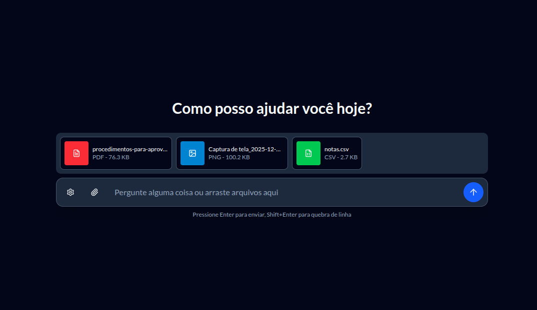 Arraste e solte seus arquivos ou selecione-os do seu computador. Suporta uploads múltiplos.