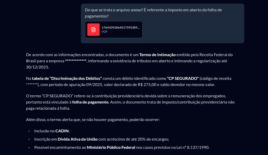 Converse com a IA sobre o documento, peça análises específicas ou extraia dados estruturados.